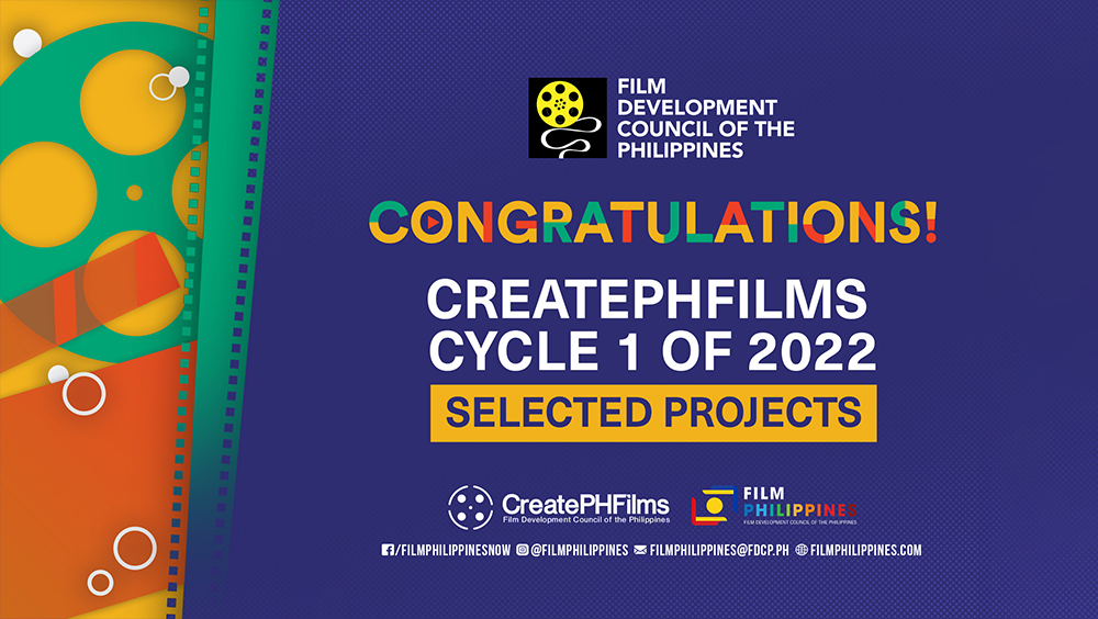 This year’s Cycle 2 will open its call for applications within the second half of the year. Visit https://www.fdcp.ph/programs/createphfilms for more information on the application process for CreatePHFilm Funds for Development (Script Development and Project Development), Production (Small Budget and Large Budget), and Post-Production or stay tuned to FDCP’s social media pages for more programs and opportunities.