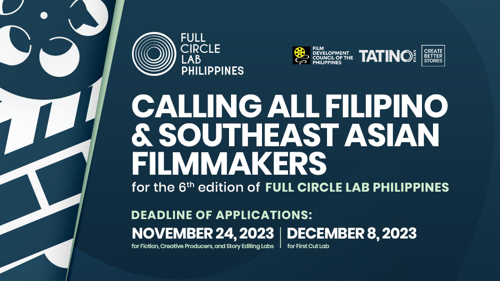 MANILA, PHILIPPINES, 20 OCTOBER 2023 — To provide opportunities for filmmakers to elevate their film projects to their highest potential and reach international standards, the Film Development Council of the Philippines (FDCP) and Tatino Films open call for applications for Full Circle Lab Philippines’ (FCL PH) 6th edition to be held in March 2024.