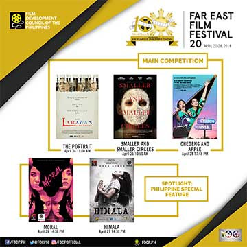 Set to compete in the Festival are "Si Chedeng sa Si Apple," "Smaller and Smaller Circles" and "Ang Larawan," while restored Ricky Lee classics, “Himala” and “Moral”, directed by the well renowned late director, Marilou Diaz-Abaya will be showcased at the restored film classics feature.